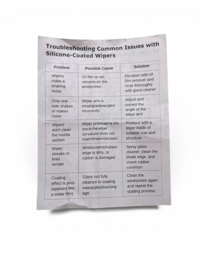 Ensure wiper arm spring pressure is sufficient